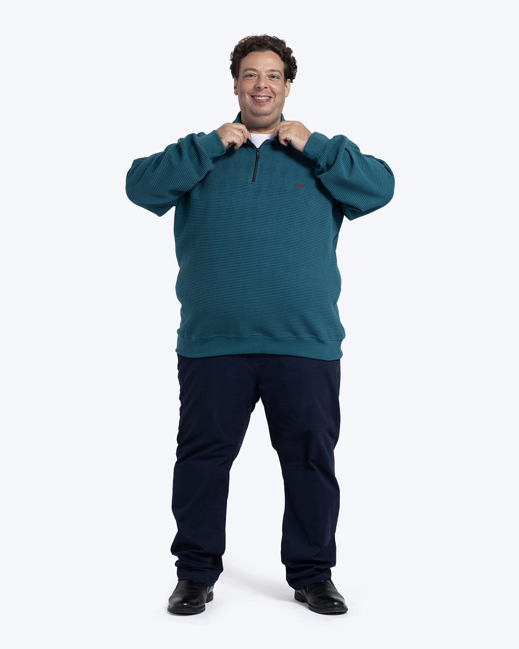 بولو جاكار نص سوستة بخامة شتوي خفيفة ولمسة راقية… نسيج ثابت، مريح، وقَصّة شيك تديّك دفء وأناقة في نفس الوقت. اختيار مثالي لشتاء عملي ومظهر مرتب