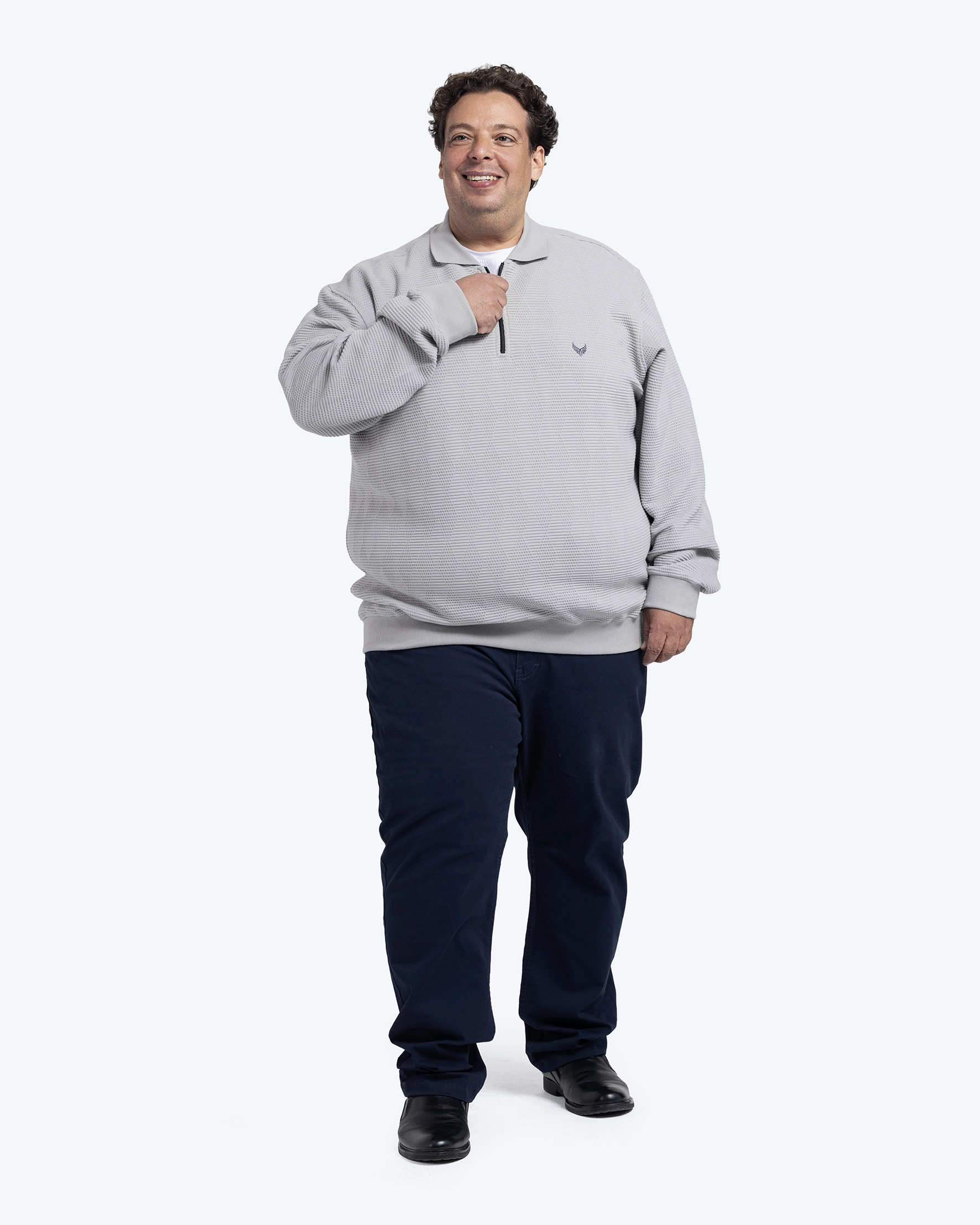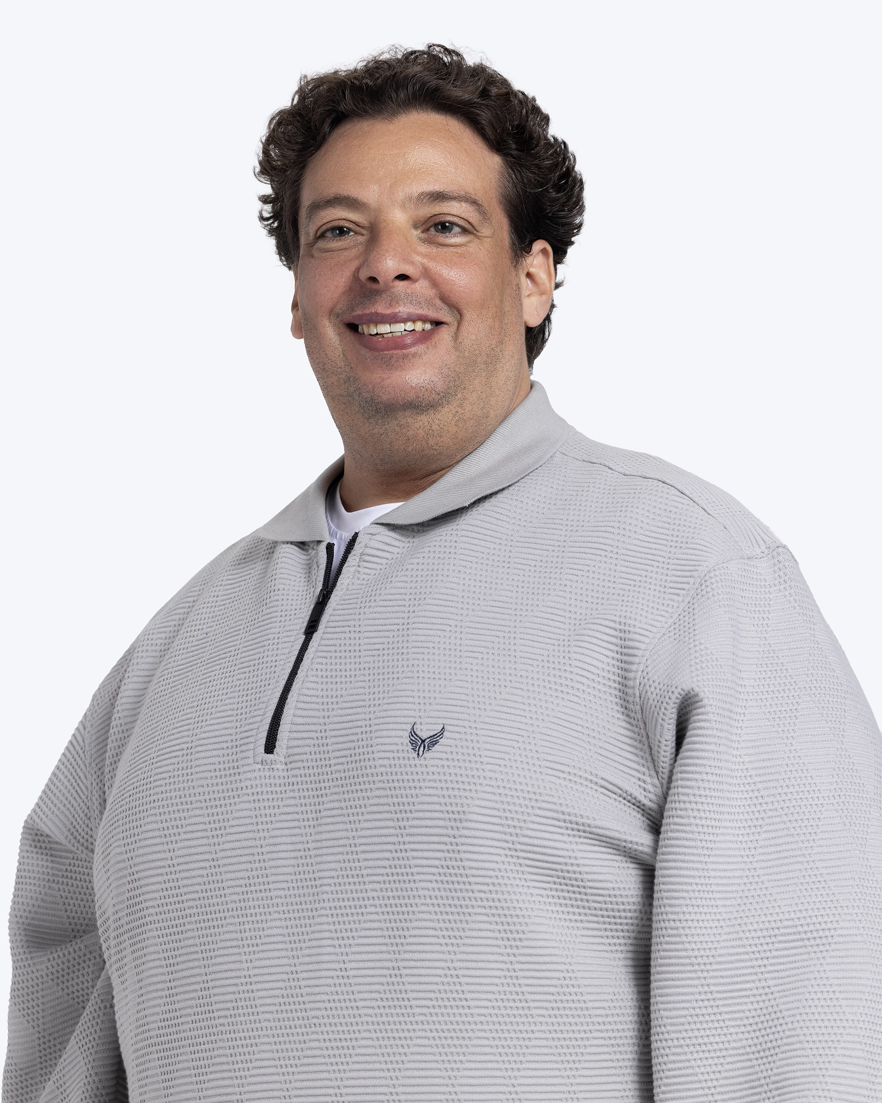 بولو جاكار نص سوستة بخامة شتوي خفيفة ولمسة راقية… نسيج ثابت، مريح، وقَصّة شيك تديّك دفء وأناقة في نفس الوقت. اختيار مثالي لشتاء عملي ومظهر مرتب