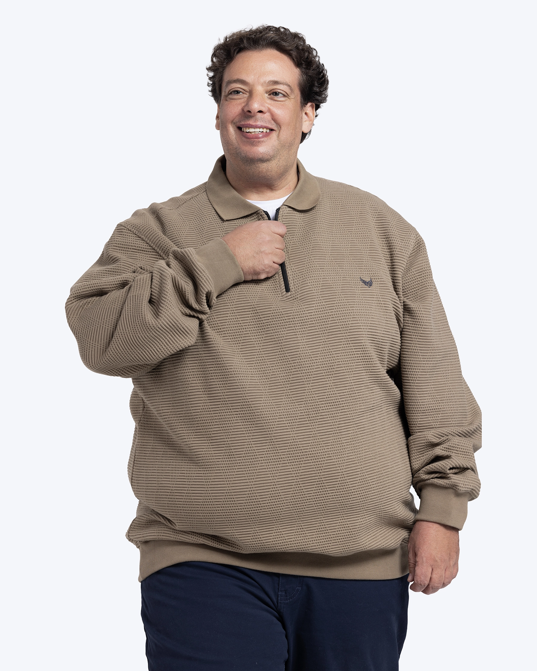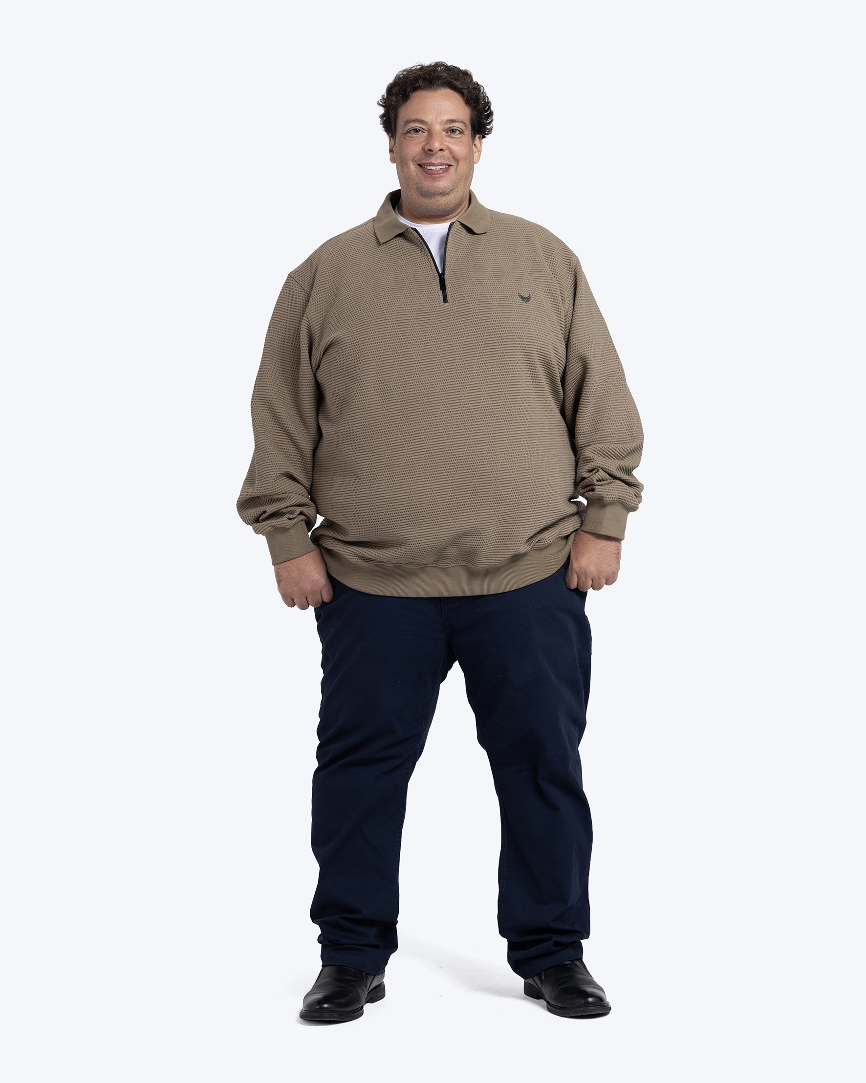 بولو جاكار نص سوستة بخامة شتوي خفيفة ولمسة راقية… نسيج ثابت، مريح، وقَصّة شيك تديّك دفء وأناقة في نفس الوقت. اختيار مثالي لشتاء عملي ومظهر مرتب